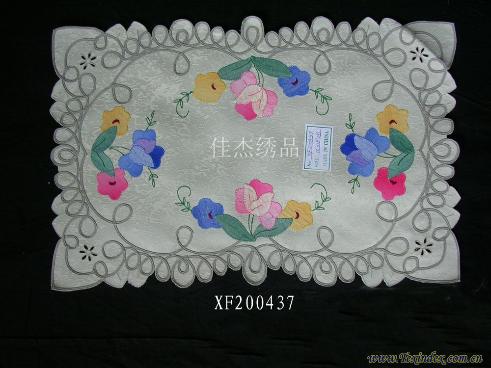 補(bǔ)花盤墊  規(guī)格33*48/30*45/15*30 纖維材料100%滌 品種補(bǔ)花盤墊 織制方法補(bǔ)繡 工藝特點(diǎn)手工 產(chǎn)地山東 淄博