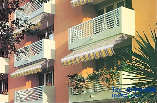 DS2000曲臂式遮陽蓬,工作是使用機(jī)械裝置和曲臂裝置系統(tǒng),在彈簧的作用下,產(chǎn)生伸縮張力,整個(gè)曲臂組由臂止動件實(shí)現(xiàn)5~70度任意精確平行調(diào)整。可通過不同傳動系統(tǒng):手動曲柄操縱、電機(jī)操縱.結(jié)構(gòu)骨架采用高強(qiáng)鋁合金/優(yōu)質(zhì)剛材/鋅合金/ABS樹脂/聚丙烯PP/尼龍制成.而螺栓和螺絲均為不銹鋼制成.可適用于混凝土、磚墻、木質(zhì)、輕鋼龍骨等硬型墻體安裝,還可以實(shí)現(xiàn)吊頂安裝.最大適用伸出長度為3.50米.