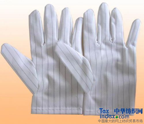 防靜電手套基本特性:    是采用特種防靜電手套布制作,基材由錦綸和導(dǎo)電纖維組成,導(dǎo)電 纖維間距為,手套具有極好的彈性和防靜電性能,避免人體產(chǎn)生的靜電對(duì)產(chǎn)品造成破壞,可在無塵室內(nèi)使用。手套具有極好的彈性和防靜電性能,避免人體產(chǎn)生的靜電對(duì)產(chǎn)品造成破壞,可在無塵室內(nèi)使用,用于需用手套操作的防靜電環(huán)境。穿戴防靜電手套可避免操作人員手指直接接觸靜電敏感元器件,并能安全泄放操作人員所帶的人體靜電荷。它是半導(dǎo)體工業(yè),光電工業(yè)等工作人員工作時(shí)必需穿戴的。主要用于需用手套操作的防靜電環(huán)境如電子、儀表等行業(yè),能防止由于靜電所造成的電子元器件損毀、老化;在石化行業(yè)能防止由于靜電所引起的燃燒、爆炸等危險(xiǎn)! ”砻骐娮 105-107 Ω;  靜電衰減時(shí)間 <0.1sec  帶電電荷量 <0.3 μ C/pair  洗滌次數(shù):A級(jí)>100次;B級(jí)>50次   尺 寸 S.M.L  包 裝 10 pairs/bag.100 bags/carton  防靜電手套用途:  防靜電性能優(yōu)良,耐洗滌。 能消除靜電對(duì)人體的危害,消除人體運(yùn)動(dòng)或穿脫時(shí)由靜電產(chǎn)生的不快感。能消除靜電引起的衣服貼身、纏結(jié),不易沾塵,耐臟易洗滌。防靜電手套廣泛用于電子、機(jī)械制造、醫(yī)療等各行業(yè)。主要用于需用手套操作的防靜電環(huán)境如電子、儀表等行業(yè),能防止由于靜電所造成的電子元器件損毀、老化;在石化行業(yè)能防止由于靜電所引起的燃燒、爆炸等危險(xiǎn)。防靜電性能優(yōu)良,耐洗滌。能消除靜電對(duì)人體的危害,消除人體運(yùn)動(dòng)或穿脫時(shí)由靜電產(chǎn)生的不快感。能消除靜電引起的衣服貼身、纏結(jié),不易沾塵,耐臟易洗滌。