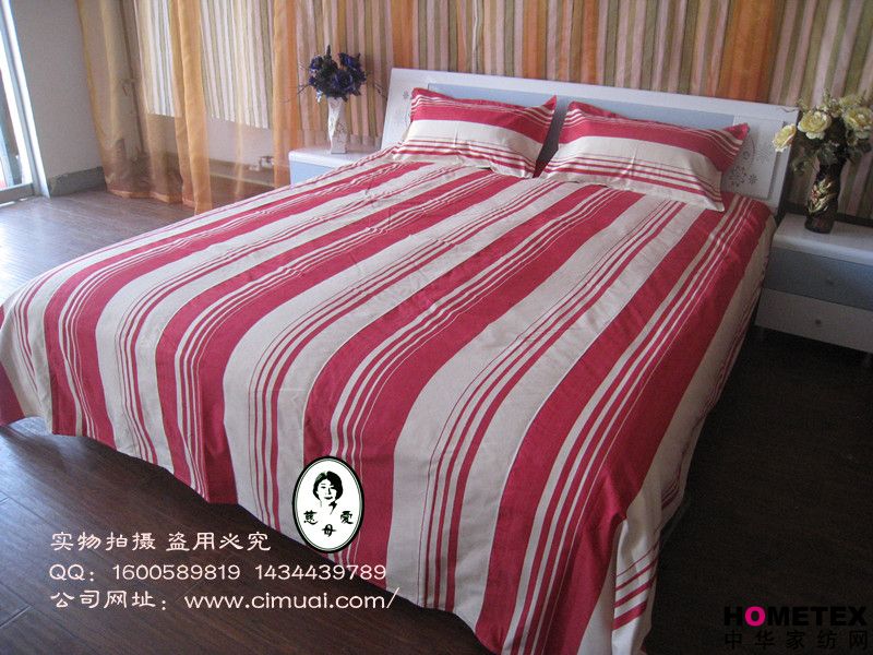 慈母愛”牌老粗布床品有著其他床品不可比擬的優(yōu)越性: (一)、綠色天然、環(huán)保健康、主要原料是100%純棉線制成,從種植到手織布制品,不使用農(nóng)藥和化學(xué)染劑,紡織品不含甲醛,偶氮等化學(xué)重金屬離子,完全符合歐共體紡織品生化標(biāo)準(zhǔn)規(guī)定:“禁用致癌偶氮染料的要求”,是真正的綠色生態(tài)紡織珍品。 (二)、冬暖夏涼、透氣吸汗 柔軟舒適,透氣吸汗,適用于貼身使用;吸附人體皮膚上的汗水和微汗,使體溫迅速恢復(fù)正常。 (三)、抗靜電、防螨止癢,親合肌膚,有人類“第二肌膚”之稱。PH值呈酸性,對皮膚無刺激;符合環(huán)保及健康要求。 (四)、線粗紋深,質(zhì)地厚重,不卷邊 不褪色、不易搓起、不起球(純棉縫制,不帶自由電荷,棉纖維不易變形)不卷邊,由于粗布線粗、紋深,其表面形 成無數(shù)個按摩點(diǎn)對人體有意想不到的按摩作用。 (五)、綠色保健、改善睡眠, 使用老粗布使人體產(chǎn)生溫?zé)嵝?yīng),特別是彩棉的紅外線作用于人體,增加人體的微循環(huán)血流,激活組織細(xì)胞,有效的調(diào)節(jié)神經(jīng)系統(tǒng),疏通經(jīng)絡(luò),改善睡眠質(zhì)量.融自然、和諧、綠色、環(huán)保、健康于一體,是現(xiàn)代人返樸歸真、回歸自然的時尚佳品. |