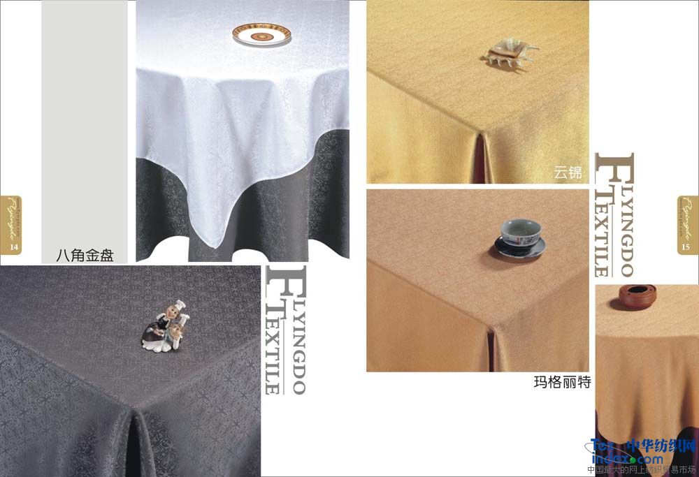 主要銷售客房;平紋 中,高檔【多種顏色40支-60支緞條】床單,被罩,枕套,枕芯,被子,墊被,床裙,床罩,床尾墊,浴簾以及毛巾系列。                                                    餐飲系列;多種顏色中高檔 【純棉  方格 化纖 花色圖案】臺布 口布 臺墊臺裙 臺呢 椅套 印花臺布具有不褪色、耐洗、耐磨、色澤艷麗、平整挺括且使用壽命長的特點(diǎn),印花臺布規(guī)格2.8m,表面繡有花朵圖案作裝飾,造型典雅、大氣,精美時尚,使整體更加美觀,深受廣大消費(fèi)者的喜愛。白色印花臺布采用優(yōu)質(zhì)化纖材料制作而成,款式新穎、物美價廉,是酒店、賓館、家庭等場所的必備用品之一。