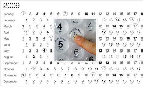產(chǎn)品包裝上的這種氣泡不僅可以起到減震的作用,對(duì)于不少人而言,它還是一個(gè)打發(fā)時(shí)間的小玩具,無聊的時(shí)候可以逐個(gè)捏破這些氣泡,F(xiàn)在好了,有設(shè)計(jì)師直接將這種氣泡與日歷整合到了一起,每個(gè)氣泡上都對(duì)應(yīng)著一個(gè)日期。每過一天就可以捏破一個(gè)。