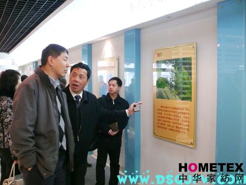 首先,張會(huì)長(zhǎng)參觀了杉杉家紡展示廳及民族家用紡織品設(shè)計(jì)大賽獲獎(jiǎng)作品展覽館,從中初步了解了疊石橋地區(qū)家紡企業(yè)的具體情況。張會(huì)長(zhǎng)表示舉辦這樣的設(shè)計(jì)大賽,有利于推動(dòng)南通家紡業(yè)名牌戰(zhàn)略的實(shí)施,調(diào)研小組還一同參觀了疊石橋歷史展覽館,郭輝主任向來賓們介紹了疊石橋的發(fā)展歷史。