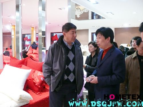 3月9日上午,中國(guó)紡織工業(yè)協(xié)會(huì)副會(huì)長(zhǎng)張延愷等一行五六人來疊石橋家紡城調(diào)研家紡市場(chǎng)發(fā)展情況,此次是張會(huì)長(zhǎng)江蘇站中的最后一站。海門市副市長(zhǎng)郭曉敏、海門工業(yè)園區(qū)管委會(huì)主任郭輝、家紡企業(yè)代表及相關(guān)部門負(fù)責(zé)人一起陪同參觀。