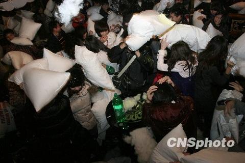 武漢舉行五百人枕頭大戰(zhàn)派對(duì)