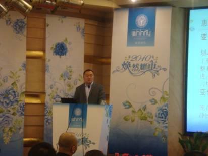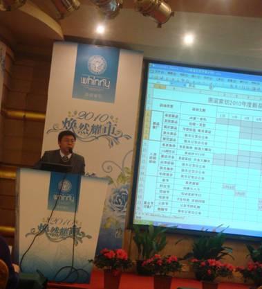 發(fā)布會上,運(yùn)營中心總監(jiān)閆愛兵先生發(fā)表了重要講話,他深入總結(jié)了惠誼的發(fā)展的三個時期:快速起步階段、調(diào)整陣痛期、穩(wěn)步發(fā)展期。分析了多變的2009年,并對09年的工作進(jìn)行了回顧,對各地的銷售業(yè)績、網(wǎng)絡(luò)拓展、品牌推廣及促銷活動、道具形象、產(chǎn)品包裝、產(chǎn)品開發(fā)、團(tuán)隊建設(shè)等方面進(jìn)行了歸納和總結(jié)。對目前惠誼存在的問題進(jìn)行理性地分析,并提出改善的建議。在此基礎(chǔ)上有的放矢地制訂了2010年的工作計劃,仍然突出一個“多變”的理念。最后用美國總統(tǒng)奧巴馬的一句話來提升主題:“Change! It is what believe in.(變革!源自我們的信念。)” 將整場發(fā)布會推向高潮,博得與會嘉賓們的陣陣喝彩。